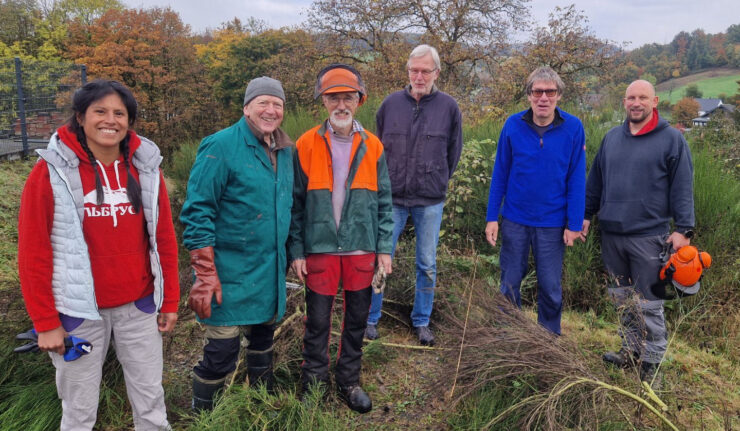 …it’s time for some green waste removal. With this in mind, it was once again time to get physical and get out the chainsaw. An additional parking area is to be created next to the school lab. However, this had turned into a green hell that needed to be tidied up. The forest workers in our club were therefore on hand to restore the area to order.